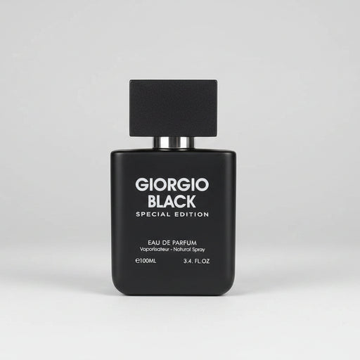 Murukali LTDThis is a 100ml (3.4 Fl. Oz.) bottle of Giorgio Black Special Edition, a sophisticated fragrance for men. The bottle features a minimalist, matte b...