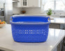 Small Blue Plastic Rattan-Style Storage Basket with Handles