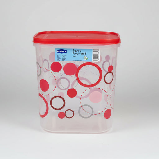 View full detailsKenpoly FoodMate Square Container – Clear Body with Red Lid and Pink & Red Circle Pattern 11 Liter