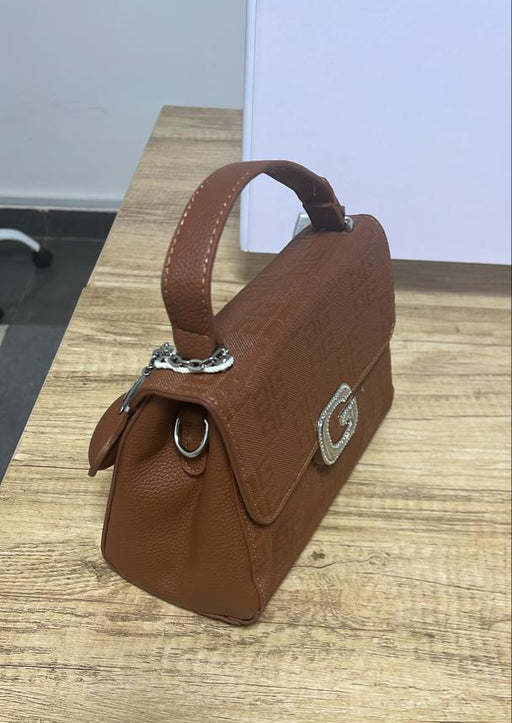 View full detailsBrown Monogram Top-Handle Handbag with G Logo Clasp