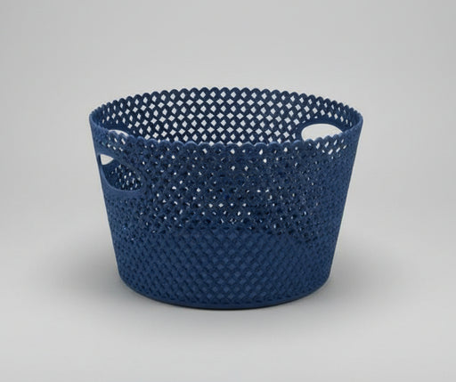 Small Blue Plastic Rattan-Style Storage Basket with Handles