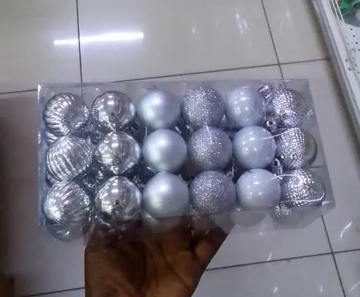 Murukali.comDecorate your Christmas tree in style with this set of 24 silver Christmas ball ornaments. Featuring a mix of shiny, matte, and glitter finishes, t...