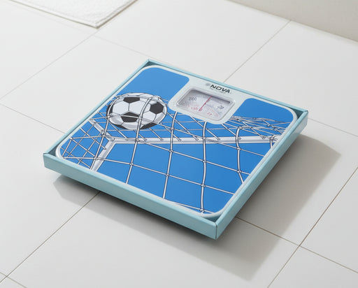 View full detailsNova Analog Body Weight Scale – Blue & White Soccer Field Design 120kg