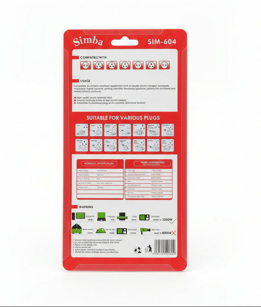 Murukali.comThe Simba Extension Socket (Model SIM-604), available at Simba Supermarket, is a reliable and convenient power solution for home or office use. It ...