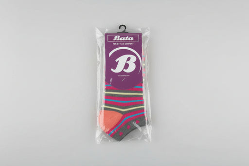 Bata Cotton Rich Striped Socks combine comfort and style with a soft, breathable cotton blend and a modern striped design in gray, blue, and yellow...