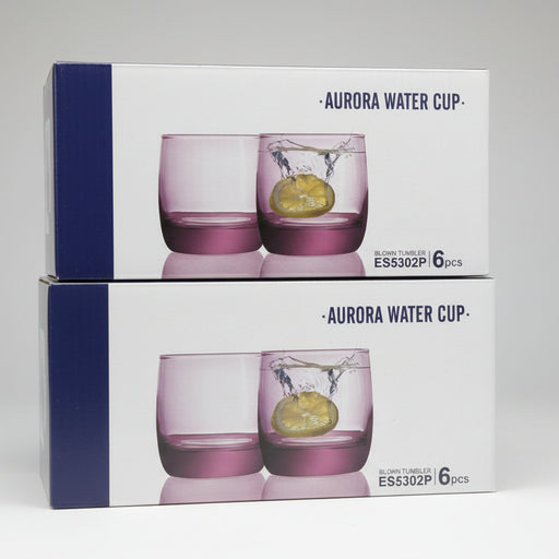 Aurora Water Cup ES5302P – Set of 6 Blown Glass Tumblers with Pink-Purple Base