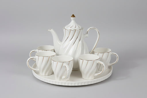 View full detailsWhite & Gold Ceramic Teapot and Cup Set with Serving Tray 7pcs