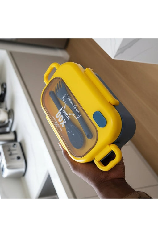 Sealed Lunch Box with Built-in Cutlery – Yellow & Blue