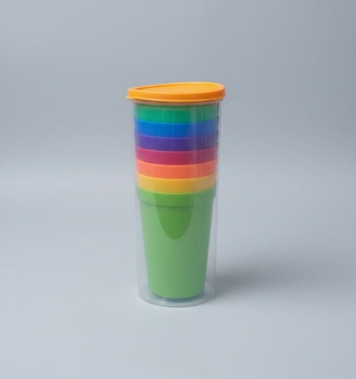 7-Piece Colorful Plastic Cup Set – With Lid 200ml