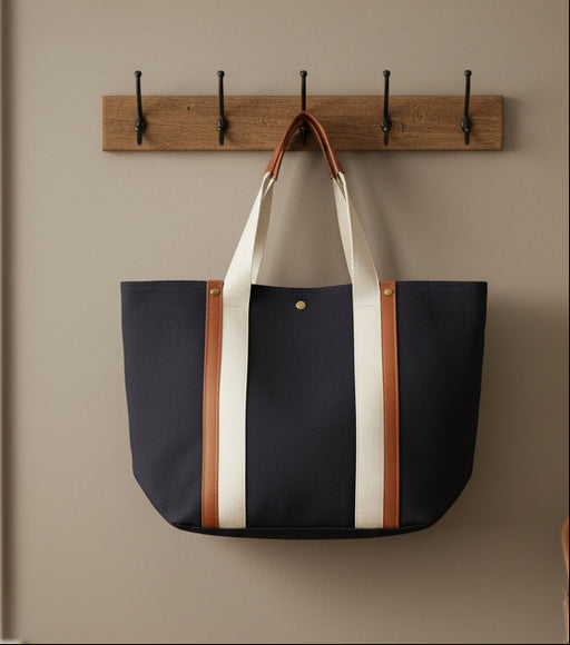 Chloé Canvas Tote Bag with Leather Details – Navy Blue & Brown