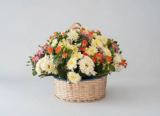 Murukali.comBloom Flower Arrangement in a Locally Made Basket Bring nature's cheeriest celebration straight to your space with this vibrant Bloom Flower Arrang...