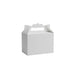 This white paper gable box, often used as a party favor or treat box, is perfect for packaging small gifts, candies, or baked goods. Made from sturdy, lightweight paper, it features a built-in handle and a classic gable design for easy carrying.