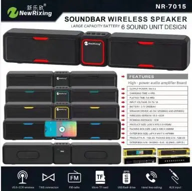 Murukali LTDNewRixing NR-7015 Kabelloser Bluetooth V5.0 TWS SoundBar Tragbarer 3D-Surround-Lautsprecher Super Bass
