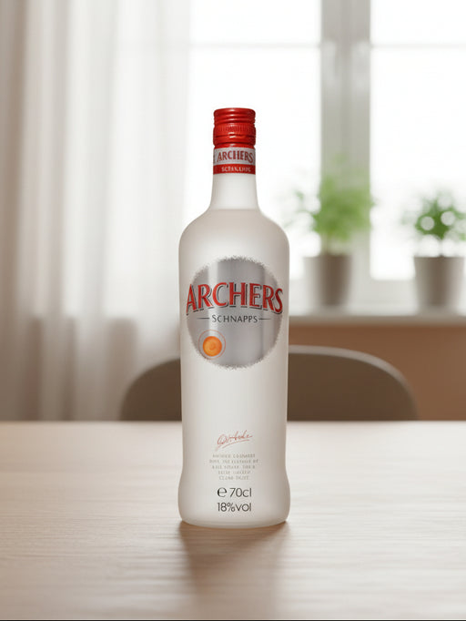 Murukali.comArchers Schnapps is a peach-flavored liqueur presented in a distinctive frosted white bottle with red branding. This variety is known for its smoot...