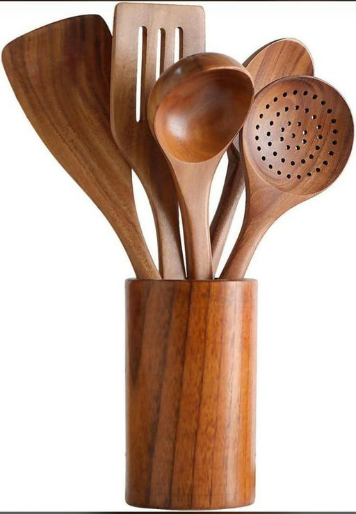 View full detailsWooden Kitchen Utensil Set with Holder Description
