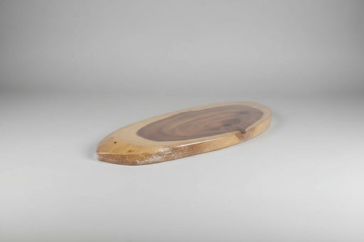 This is a simple and natural wooden board used for serving food. It has a beautiful oval shape with a dark brown center and lighter wood around the...