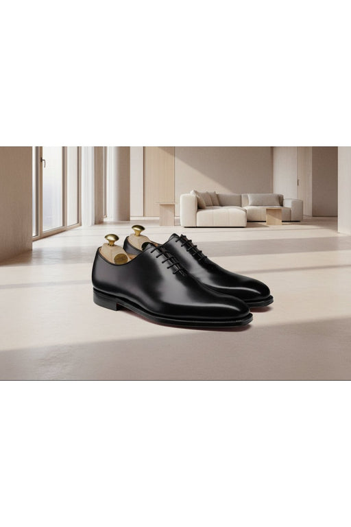 Murukali shoesThese Crockett & Jones Black Wholecut Oxfords are meticulously crafted from a single piece of premium calf leather, resulting in a sleek, seaml...