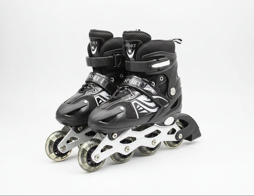 Murukali.comHit the pavement with confidence in these sleek black adjustable inline skates! Perfect for beginners and recreational skating, they feature a supp...