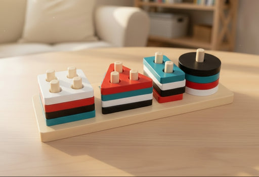Wooden Geometric Shape Sorter & Stacking Toy – Educational Toy for Toddlers