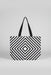 This eye-catching tote bag features a bold, monochromatic optical design with concentric black and white diamond patterns that create a striking visual effect. Constructed from durable canvas material, it is designed to handle daily use for shopping, commuting, or casual outings while maintaining its structured shape. The bag is equipped with sturdy black fabric shoulder straps that provide a comfortable carry and a high-contrast finish against the geometric print. Combining modern artistic flair with practical utility, this spacious accessory is a versatile choice for those looking to add a contemporary statement piece to their wardrobe.