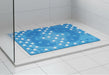 Stay safe and comfortable with this durable blue bath mat featuring strong suction cups, drainage holes, and a textured surface for grip and gentle foot massage. Ideal for bathtubs and showers.