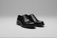 These Black Cap-Toe Oxfords are constructed with a smooth, matte leather upper and a prominent, heavy-duty lug sole designed for superior traction. The shoe features a traditional closed lace-up system with five eyelets and a distinct stitched cap-toe detail for structural reinforcement. Available in sizes 40 to 45, this model combines formal aesthetic elements with a rugged, thick rubber base to provide durability and stability in various environments.