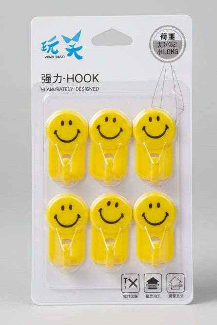 Murukali.comAdd a fun and functional touch to your space with this set of six self-adhesive smiley face wall hooks. Featuring a cheerful yellow smiley-face des...