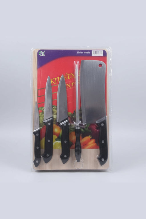 Afficher tous les détails6-in-1 Kitchen Knife Set with Wooden Cutting Board – Stainless Steel Blades