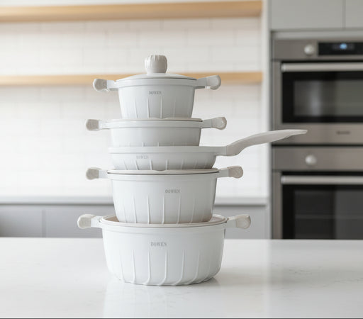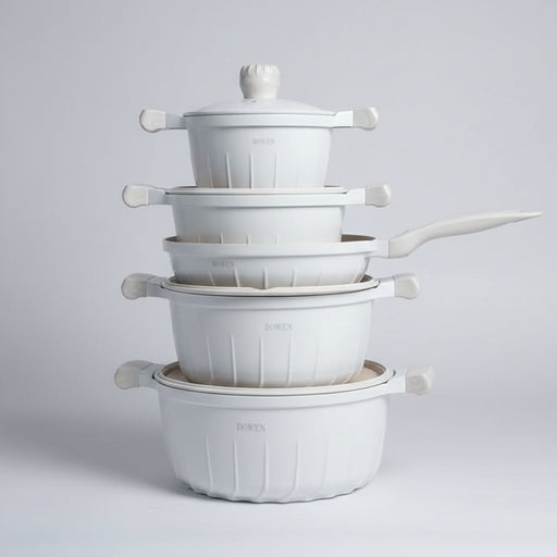 Murukali.comThe Bowen White Nonstick Cookware Set is a stylish and practical addition to any kitchen. Featuring multiple casseroles with matching lids a...
