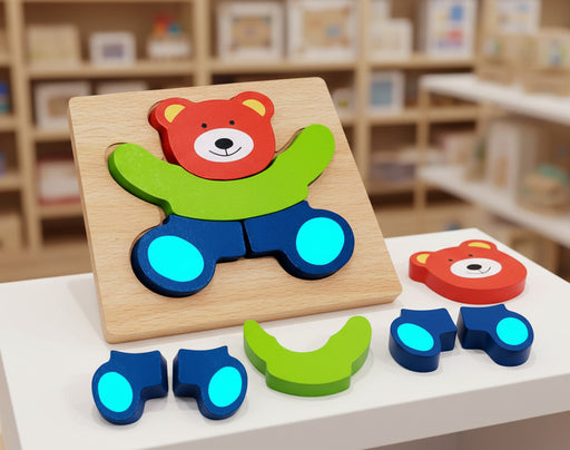 Murukali.comA wooden 3D bear-themed jigsaw puzzle for toddlers, made from eco-friendly wood with smooth edges and non-toxic paint. It supports early learni...