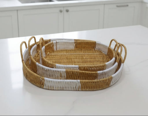 Murukali.com“Elevate your serving experience with this set of three handwoven oval trays, crafted from durable polypropylene for a stylish rattan-inspired look...