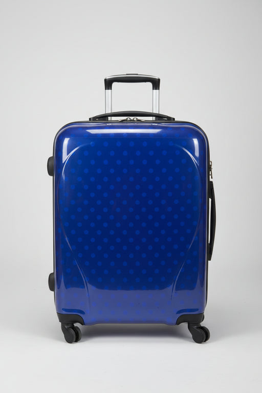 Murukali LTDThis is a stylish travel suitcase featuring a vibrant translucent blue shell decorated with a playful light blue polka dot pattern. It is built wit...