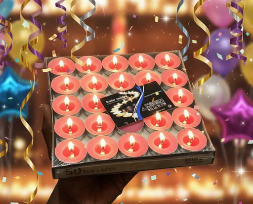 Murukali.comBrighten any space with this convenient pack of 50 unscented pink tealight candles. These small candles are perfect for creating a warm, ambient gl...