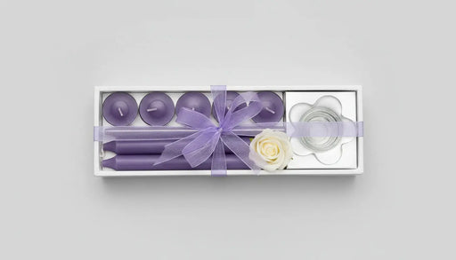 Murukali.comElevate any space with this elegant candle gift set, featuring a combination of purple tealight and taper candles paired with a clear glass candle ...