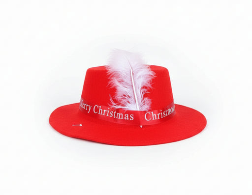 Festive Red “Merry Christmas” Party Hat with White Feather