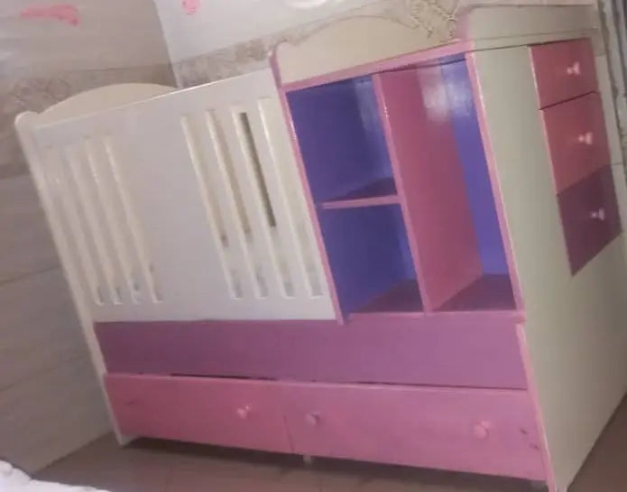 I am selling my baby girl's bed (berceau), which includes a high-quality Rwandafoam mattress. The bed is in good condition and is made from durable MDF. It has been custom-painted in the color and design I personally chose, as shown in the pictures.