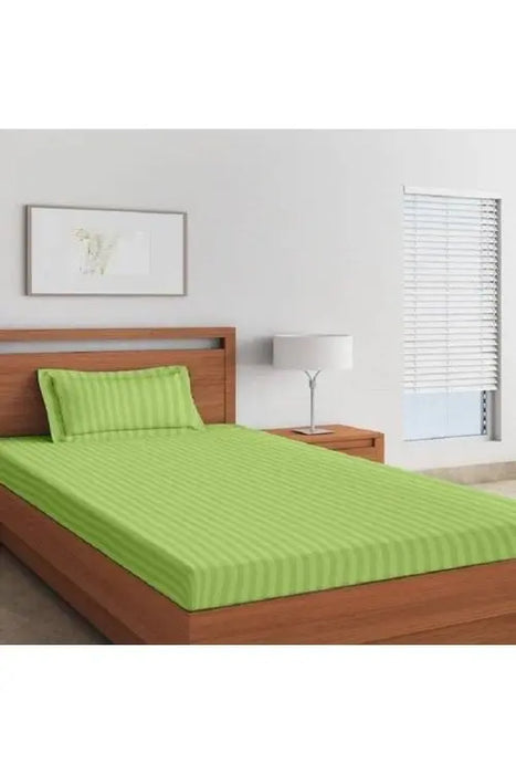 Bedsheet King Size Satin Hotel Quality STRIPE Green 2*2